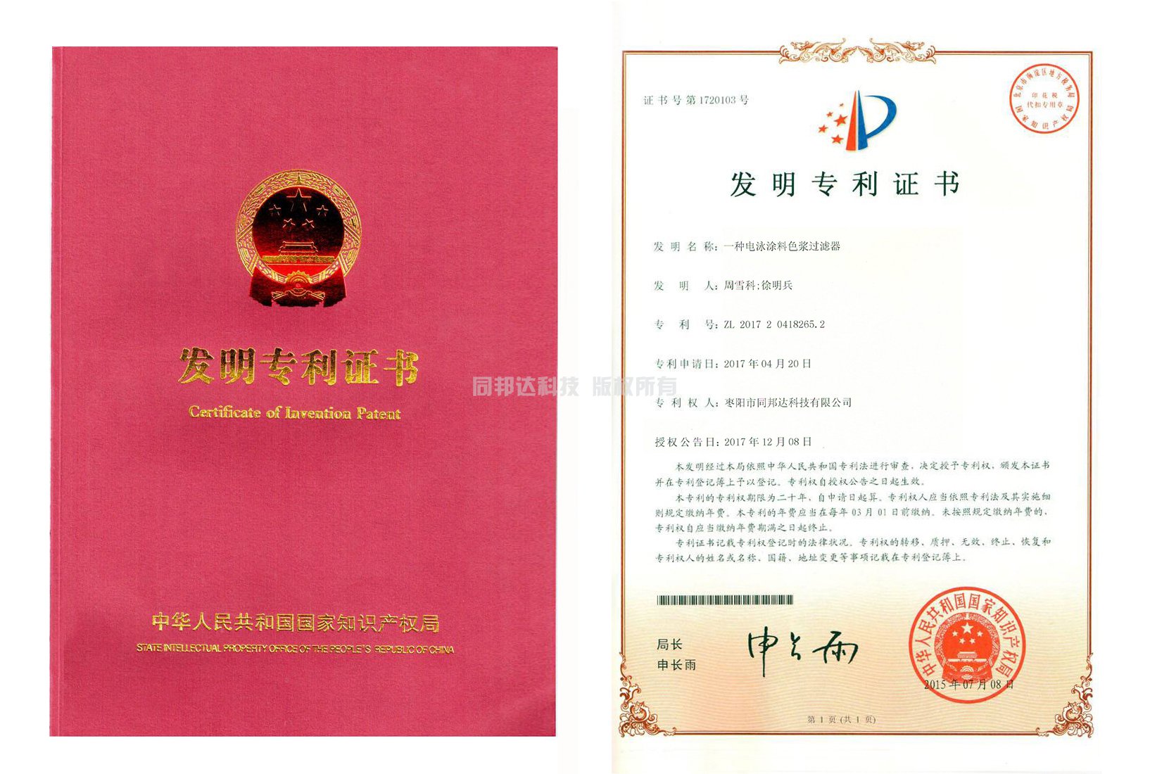 同邦達科技發(fā)明證書